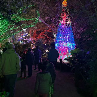 Remember that you can bring your own food to the Houston Zoo, which is wonderful for the budget and if you don't want to spend too much time waiting in lines. We brought hot chocolates for all of the kids in our party (and also for me). I WILL say that I have had the spiked adult hot chocolate at Zoo Lights before, though, and it is worth the splurge if you like that kind of thing. The kids all LOVED Winter Wonderland, the Snowy Sing-Along Stage, and the Holiday Dance Party areas in the Children's Zoo. We all enjoyed the colorful Enchanted Forest.