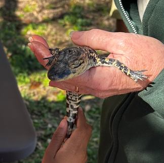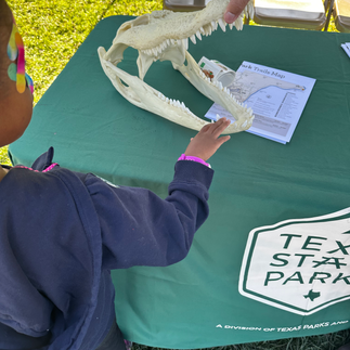 We visited Brazos Bend State Park for our family's annual First Day Hike, and it was such a blast with gorgeous weather to top it off! Last year, we were in North Carolina's William B. Umstead State Park, and the couple of years before that we went to Sheldon Lake State Park. Each year, we have a great time, but Brazos Bend really blew us away with the amount of staff members and volunteers they had on hand to create several interactive stations for the kids along the self-guided (a.k.a. at your own children's pace) hike. They were all so friendly and everyone in our group (aged 5 months to adulthood) had a wonderful time interacting with the animals, taking in the views from the observation tower, and learning more about our local wildlife.